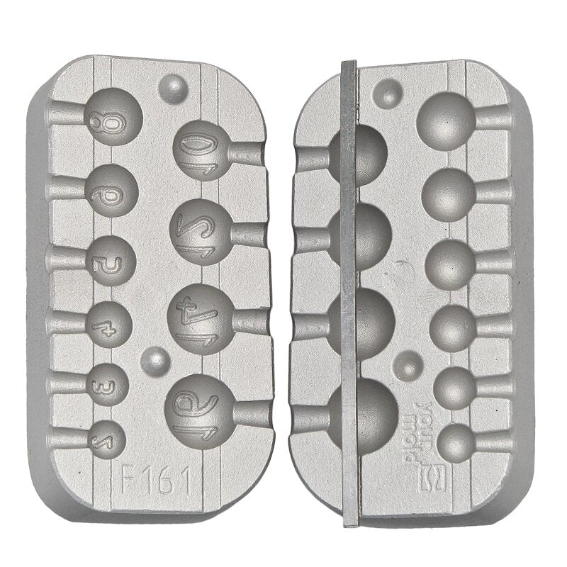 Fishing Lure Mold for Predator Fish Weights: 2/3/4/5/6/8/10/12/14/16; The mold comes with a rod 3 mm wide and 0.6 mm thick Eyes can be made from 0.5 and 0.6 mm wire. Material: duralumin.