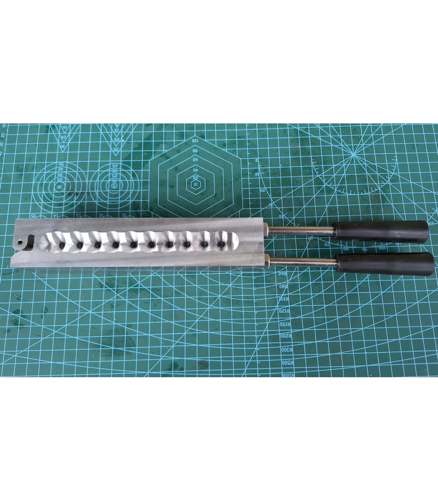 Slingshot lead mold code C52 The mold has handles and hinges  Material: duralumin Cavities: 10 Sizes: 8/9/10/12/14 mm select from the menu For other diameters, please request a quote.