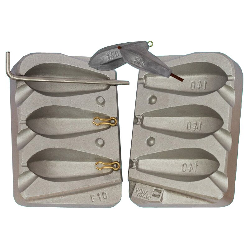 The mold produces a sliding lead and two with a ring to which a swirl can be attached.