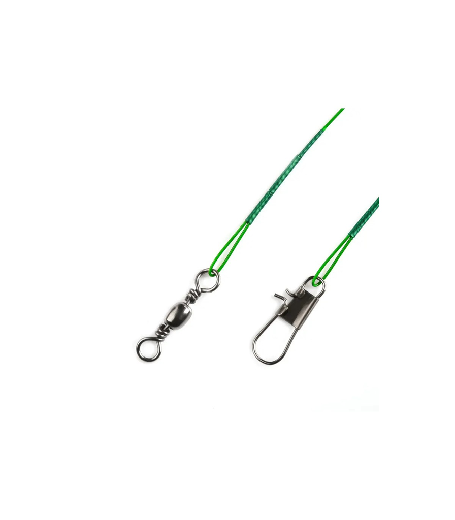 Predator Steel Leaders Set – 100 pcs Strong and flexible. Length: 20 cm (measured without clip and swivel)Thickness: 0.5 mmStrength: 14 KG / 30 LB